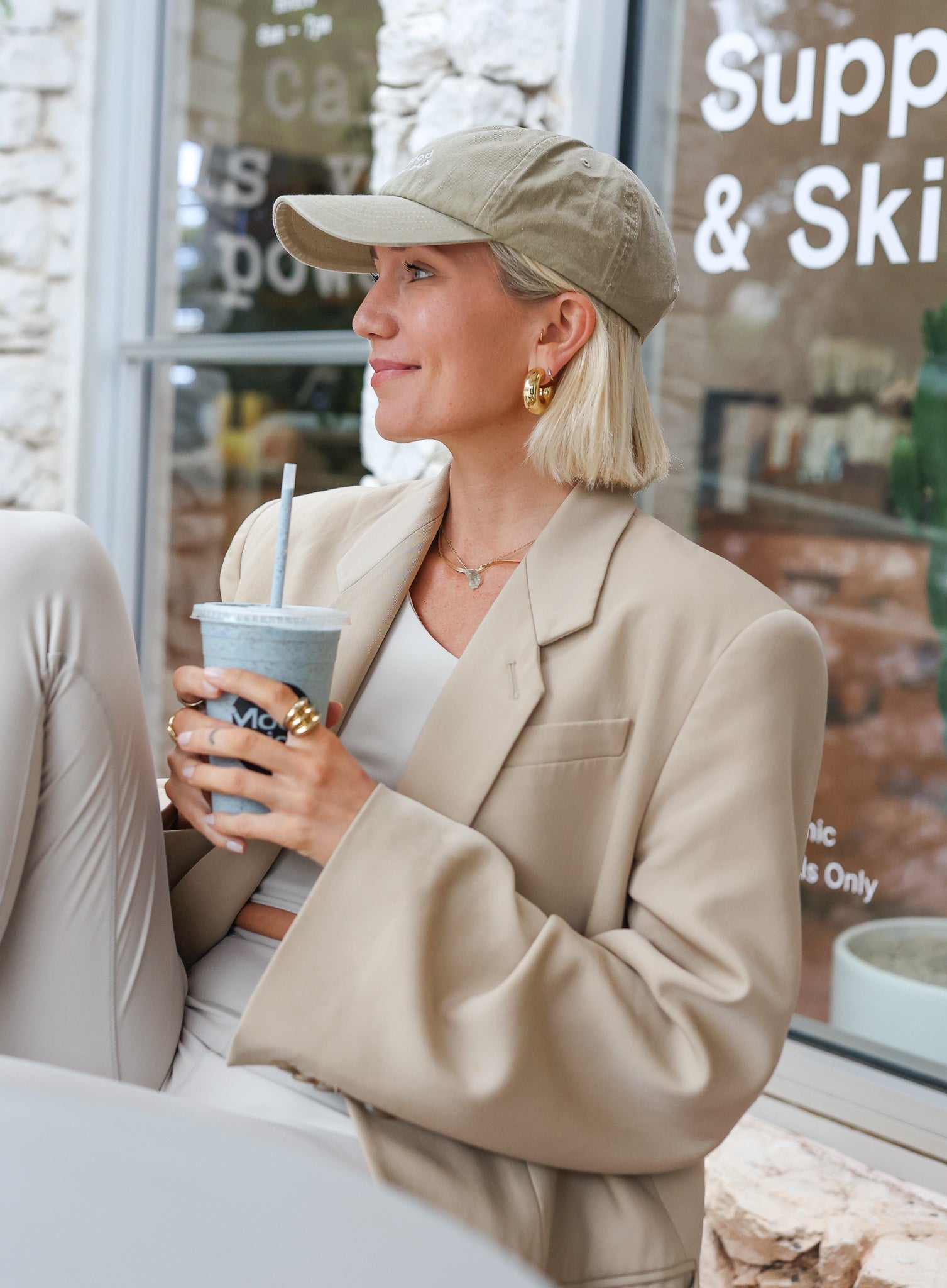 Jag är helt kär i vår keps som är i den perfekta beiga färgen och passformen. Du kan enkelt justera storleken och forma den som du vill ha den. Perfekt att snygga till din look med eller att dölja en bad hair day med.